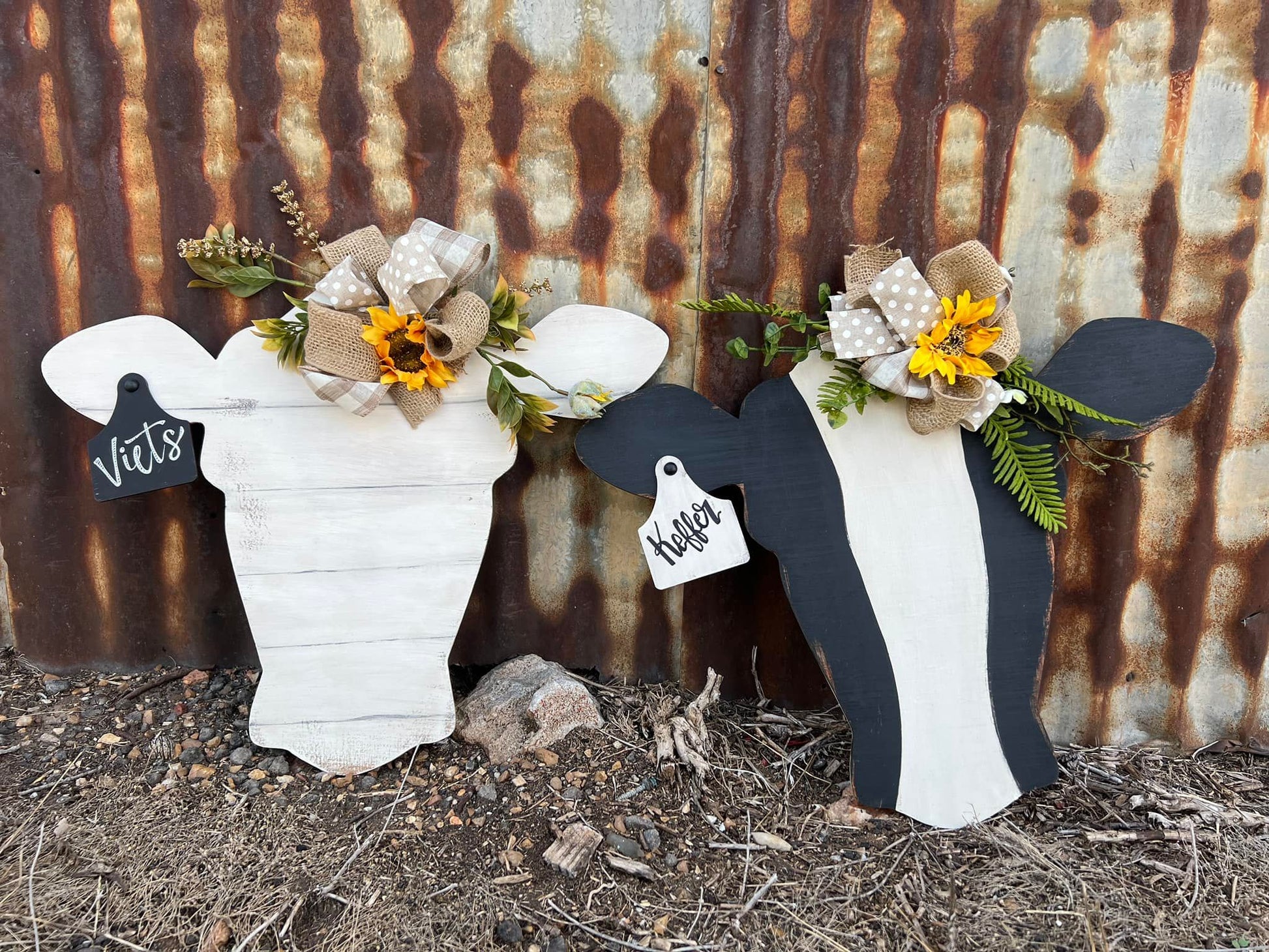 These are so fun! They are 18" x 13" x 1/4" in size. They are cut from Maple plywood. The flowers and ribbon may vary from the pictures.