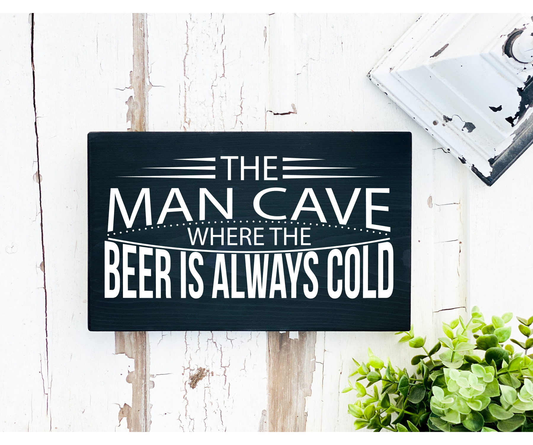 Declare your domain with this classic Man Cave sign that says it all: “Where The Beer Is Always Cold.” Whether it’s for your bar, garage, shed, or den, this rustic sign adds a bold and humorous touch to any space where chill time is sacred.