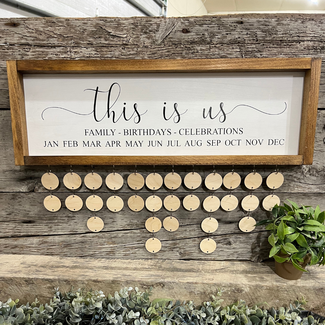 Sign is approximately 8" tall x 24" wide and 1 1/2 deep. Comes with 50 round circles that can be personalized. Also includes the S hooks for hanging.