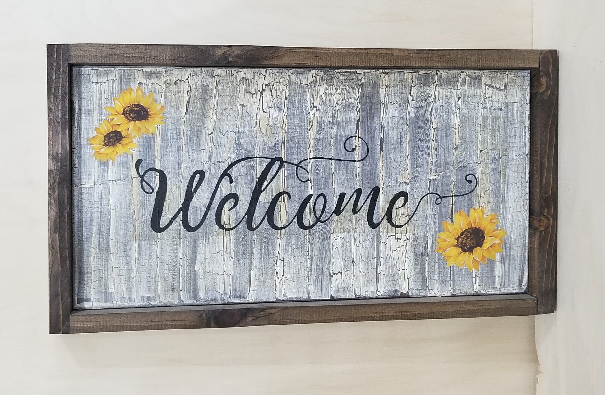This gorgeous weathered sign is one of my favorites. Its weathered and the sunflowers add beautiful character. Measures 16" long, 11" tall and 1 1/2" wide.